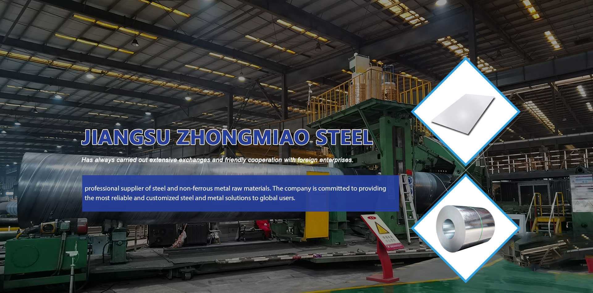 Jiangsu Zhongmiao Steel Co., LTD. ("Zhongmiao Steel" for short) is an international and professional supplier of steel and non-ferrous metal raw materials. The company is committed to providing the most reliable and customized steel and metal solutions to global users. As early as 2003, Zhongmiao Steel has been active in the domestic steel market, and is the designated supplier of CNOOC, CNNC, CSCEC and CLP. By more than ten years of efforts and catering to the growing demands of international markets, the company started to serve global users since 2013. As a one-stop supplier of steel and metal raw materials, it currently has become the preferred steel supplier of tens of thousands of customers around the world with its strong supply chains, solid professional knowledge and reliable service. Customers are located in Europe, the Middle East, South America, Southeast Asia and more than 110 countries and regions.
